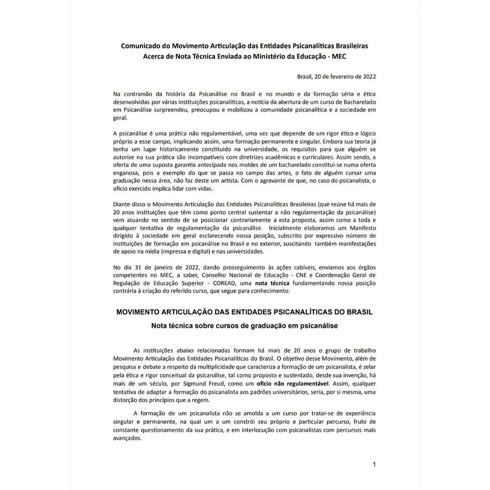 Comunicado do Movimento Articulação das Entidades Psicanalíticas BrasileirasMAIÊUTICA 22 de fev. de 20220 min de leitura